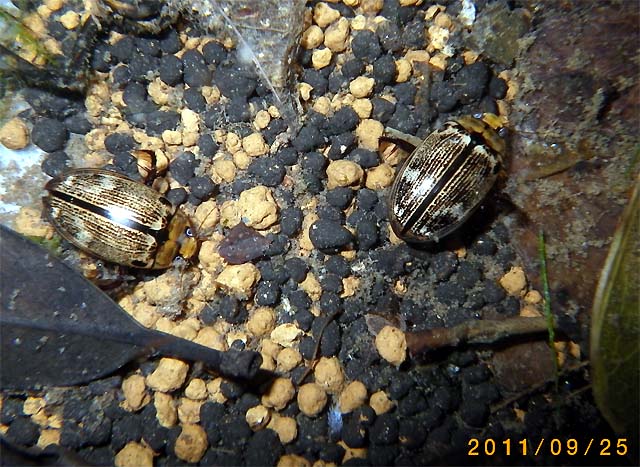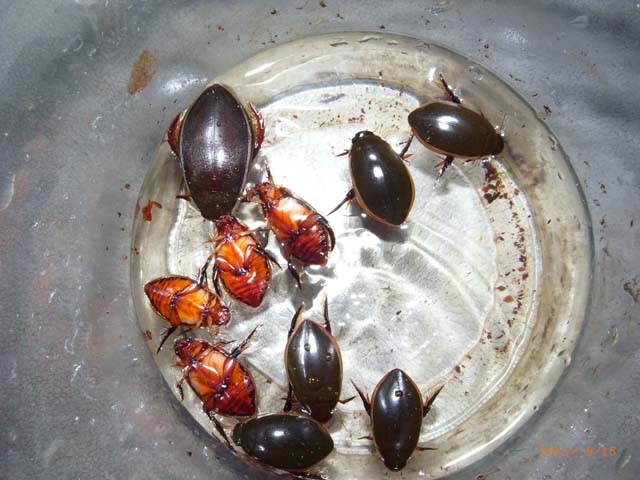 こんにちは。 その後、順調に羽化個体が増加して、一時期、 成虫の数は13匹にまで至りましたが、気を抜いていたら、 今年も「謎の突然死」が...orz 2日で3匹が☆になり、残り10匹。 潜行中は3匹、3令まもなく上陸が3匹、まだまだ1令という遅咲き(?)が2匹、 昨年組の生き残り4匹、一昨年組は10匹という状況です。 成虫たちは、そろそろ、気温の安定した室内から、屋外のベランダに移そうかと考えております。 一応、生まれた年ごとに管理していますが、生まれた幼虫の管理が粗雑なため、今年の新成虫は、何代目なのか判らなく成ってしまいました...。