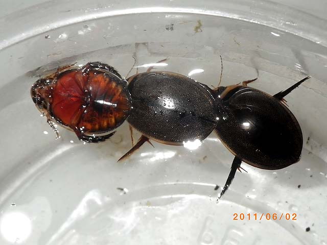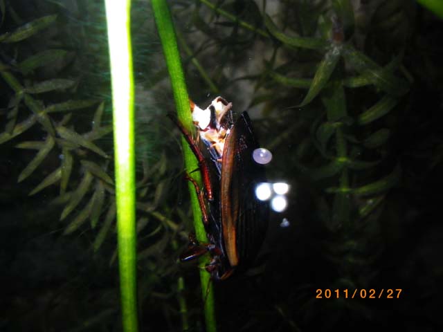 けいたさん、こんにちは。お久しぶりです。 いや〜凄い数ですね。毎度頭が下がります。個人で飼育するキャパを超え施設と呼べるのでは?そこで疑問に思ったのですが、幼虫の餌は野生採集ですか?それとも買い餌?桁外れの飼育数なので、餌の確保も大変だろうな〜と思いまして。。。 私も個人レベルでがんばってますが、さほど産卵数を心配し制限しなくても、その時々まあまあ適数で経過してるような状況です。多くてせいぜい20位です。 家はホンゲンがメインですけど、やっぱ50cmプラコンテナじゃこんなもんなんですかね。この前30×18cmの小さな容器(室内)で試したら、孵化はたったの3匹でした。 外繁殖は、ホテイにあちこち産卵跡(噛み跡)がありましたが、、、 今年は低温続きで、しばらく放置してたら、その噛み跡周辺を成虫に食い荒らされました・・・(>_<) 今年はヒメコウホネがだいぶ数も増えて成長してきたので、産むかな?っと思ってたらなぜかホテイの方に行っちゃいますね。。。